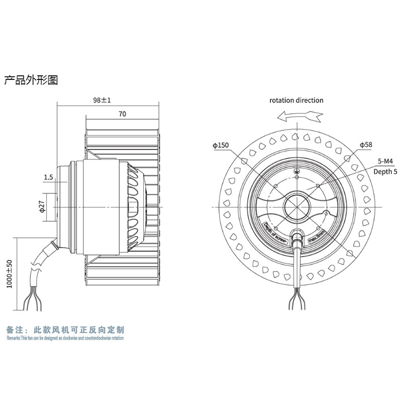 YWF.F2S-150-070AX0A全新新風系統低噪音風機無框交流