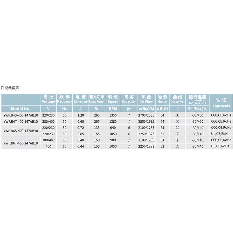 • YWF.B4S-400-188AB10全新400系列IP54后傾離心風機F級免