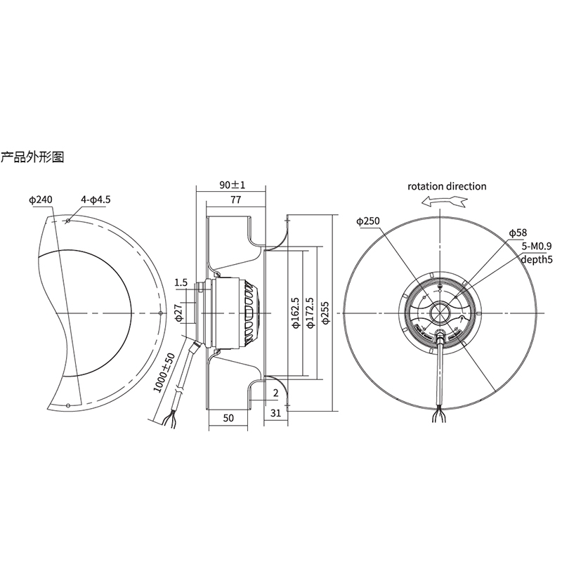 YWF.B2S-250-077AB00全新原裝250系列后傾離心風機散熱