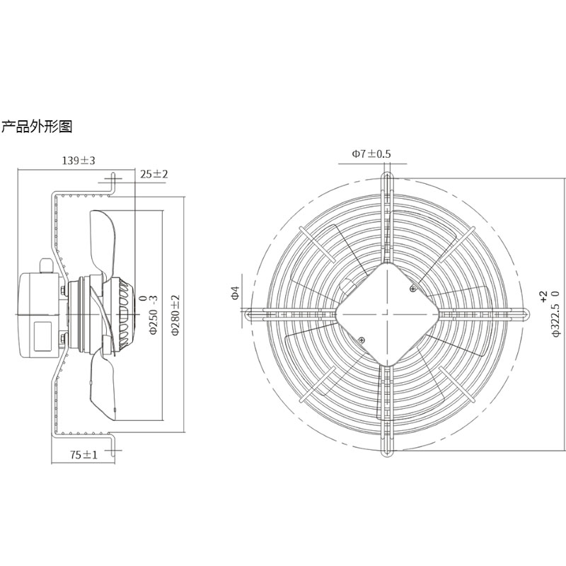 • YWF.A2S-250S-7HIIA00全新大型工業專用網罩風機外轉子