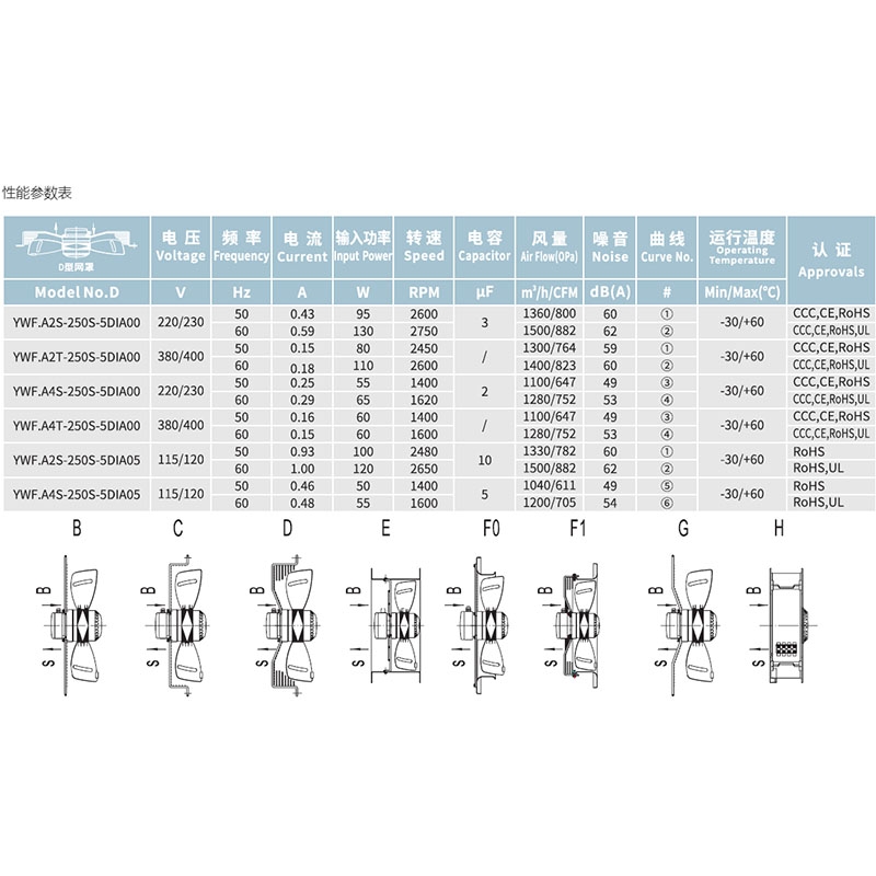 YWF.A2S-250S-5DIA00全新原裝防潮高效節能IP54外轉子電
