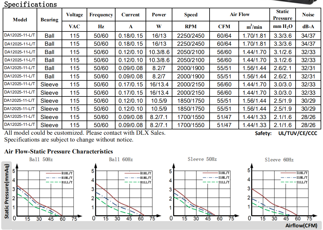 120 x 120 x 25mm DA12025 115/220V廠家定制12025散熱風扇,12厘米軸流風扇可定制