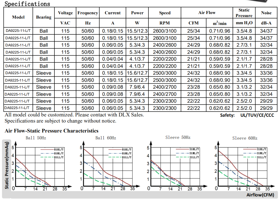 92 x 92 x 25mm DA9225 115/220V軸流風機,9厘米散熱風扇可定制OEM