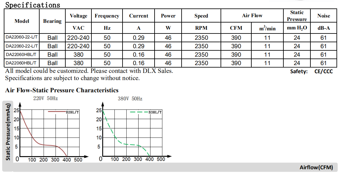 Φ220 x 60mm DA22060 220/380V廠家現貨,UL認證,CE認證可OEM