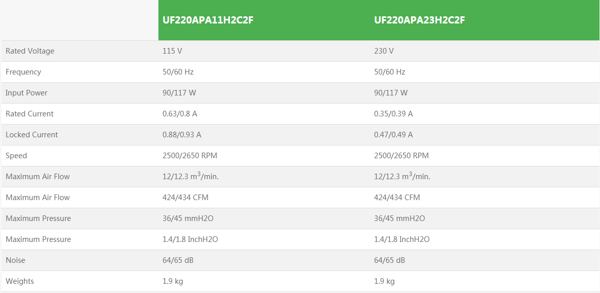 UF220APA11H2C2F渦流式工頻離心風機空氣凈化器風扇高品質低噪音